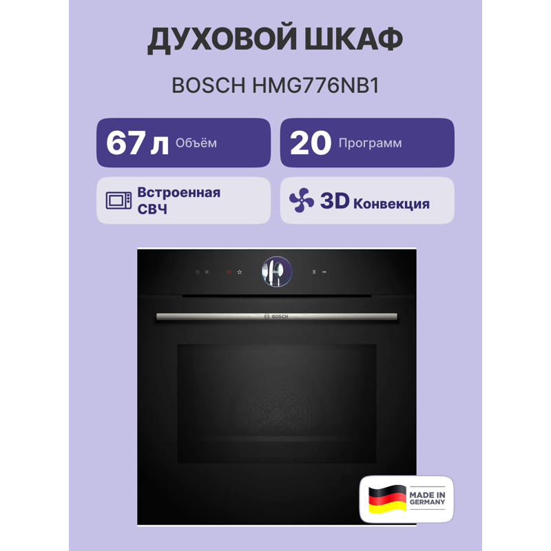 Bosch HMG776NB1 с функцией СВЧ — это надежный и многофункциональный помощник на кухне, который позволит вам создавать кулинарные шедевры без лишних усилий и времени. Наслаждайтесь приготовлением разнообразных блюд, зная, что с этим духовым шкафом у вас всегда под рукой технологии, которые облегчат вашу работу.